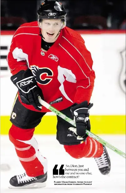 Check out the latest pictures photos and images of Dion Phaneuf and Craig Conroy. Dion Phaneuf Bio As a rookie with the Calgary Flames in the 2005-06 season Phaneuf had an appetite for contact. The whole secret behind why Dion Phaneuf got the boot to Toronto is because the dirtydog was caught shooting pucks at Craig Conroys Wife.